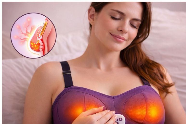 החזייה מתחילה להפעיל חימום עדין ועיסוי רטט, שעוזרים להרפות את האזור ולהעניק תחושת נוחות